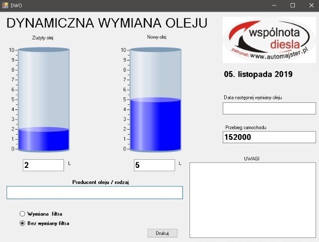 TCR OIL Dynamiczna wymiana oleju w skrzyni biegów i silnika program wydruk cena 1000 pln